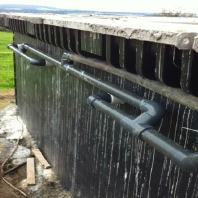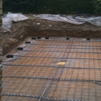 Montieren der Verrohrung, geschützt unter der Verbreiterung