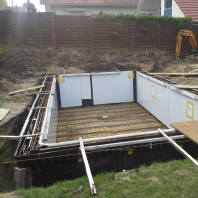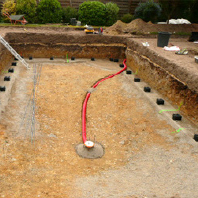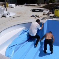 Hinterfüllen mit Flüssig-Isolation für einen Energiespar-Pool