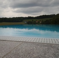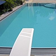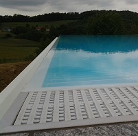 Diese Rinne kann installiert werden, wenn das Gelände neben dem Pool abfallend ist. Der Infinity-Effekt gibt einem das Gefühl, dass das Wasser über das Becken hinaus läuft. Die Infinity Rinne kann auch mit der Deluxe Rinne kombiniert werden (z.B. zwei Seiten Deluxe und zwei Seiten Infinity).