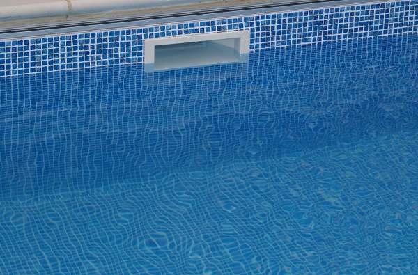 Der Skimmer wird in der Beckenwand eingebaut. Die Filterpumpe saugt das Poolwasser durch den Skimmer an und das Wasser wird in der Filteranlage gereinigt. Die Pumpe fördert das saubere Wasser über die eingebauten Düsen wieder in das Becken zurück.